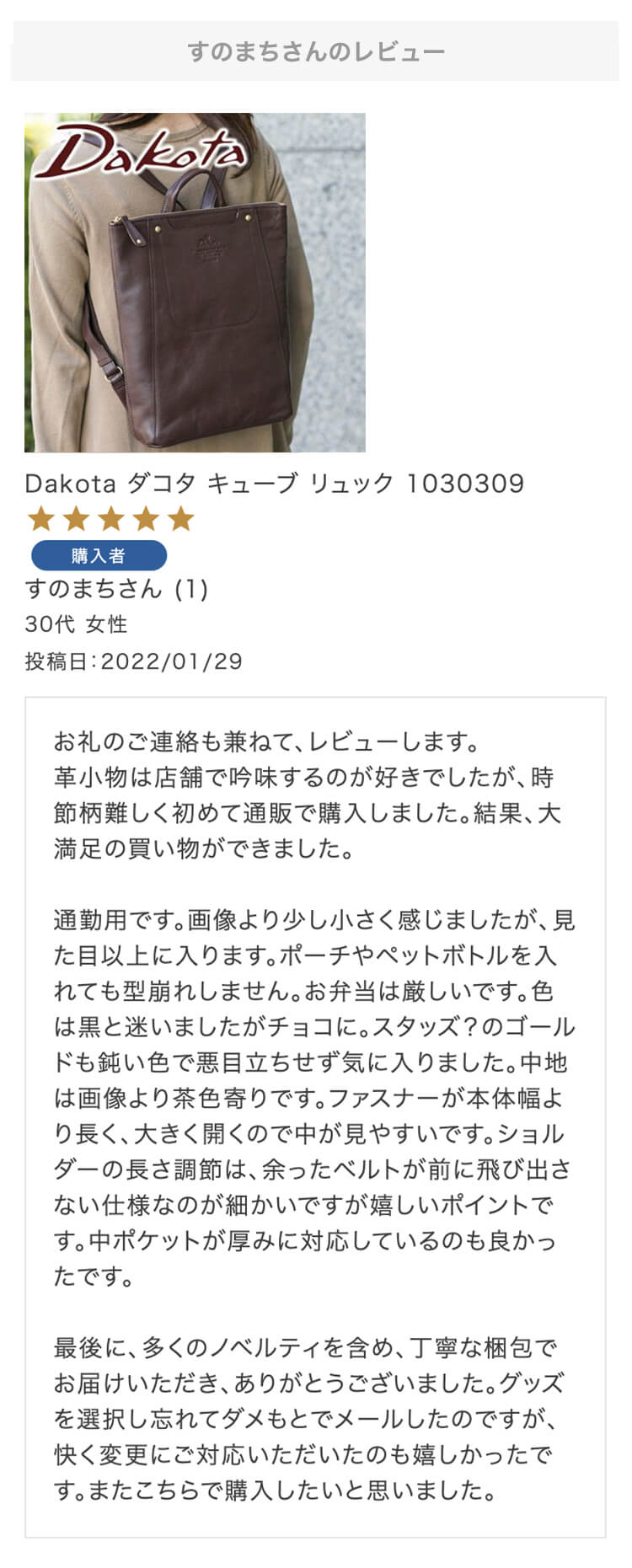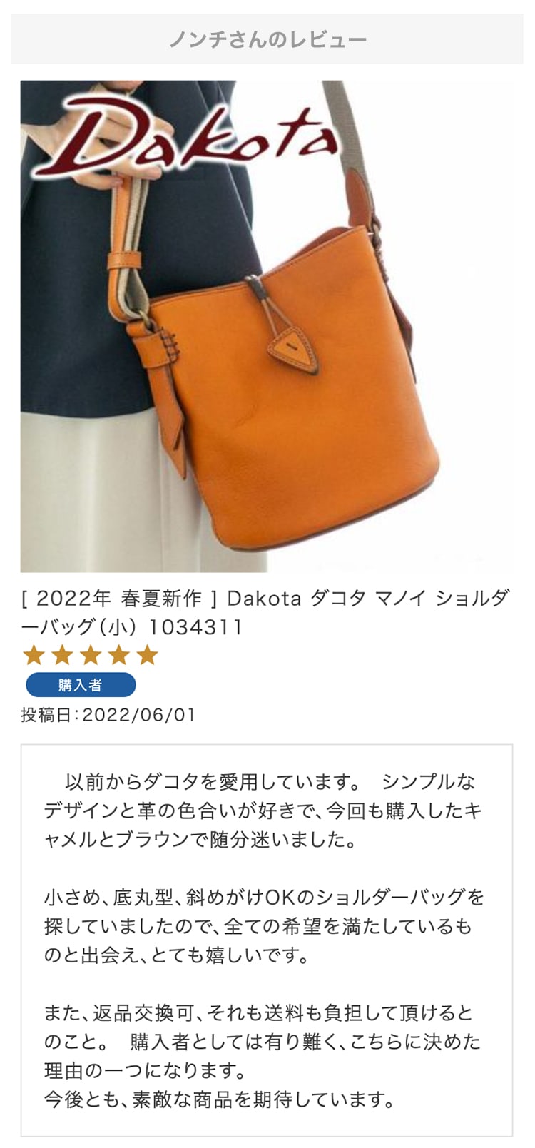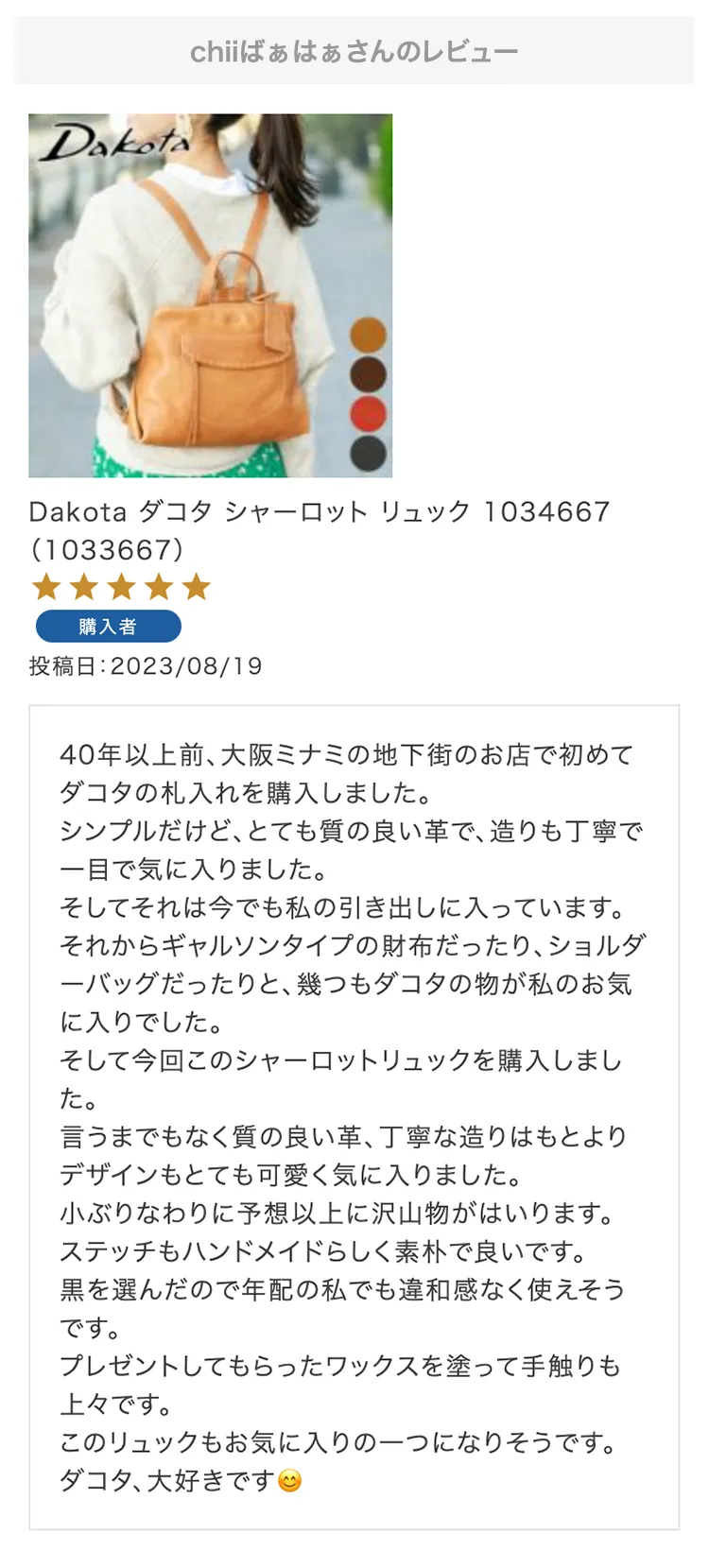 ダコタ好きの女房と一緒に選んで購入しました。 一見コンパクトに見えますが収納力も抜群です。 女房が喜んでくれて良かった。