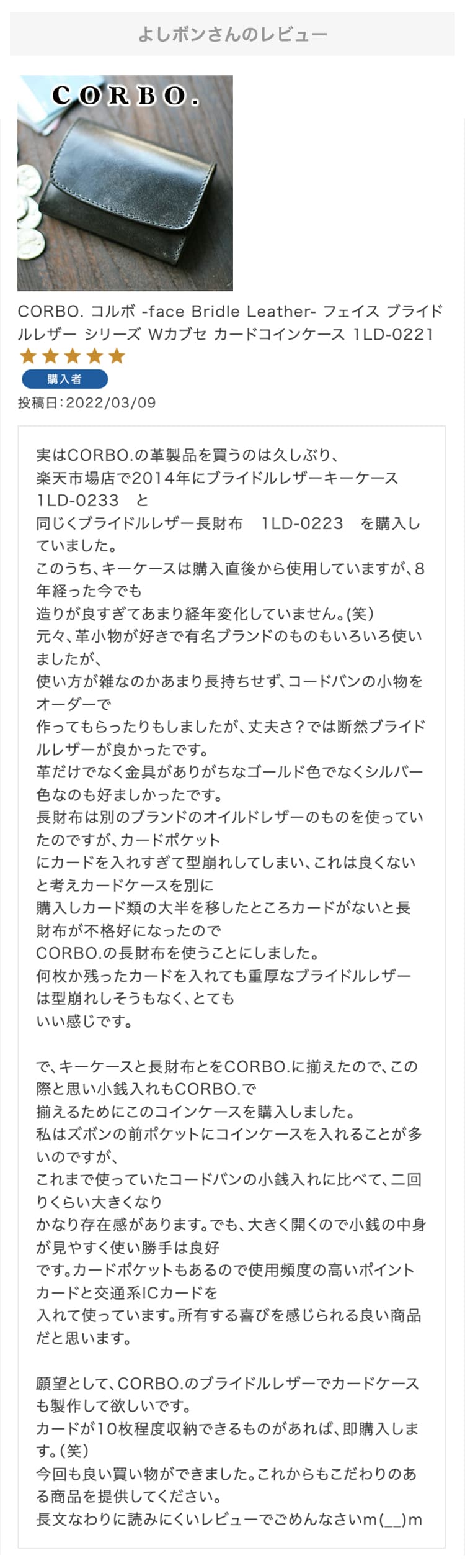 第14回 レビュー大感謝キャンペーン 特賞お名前:よしボン様投稿日:2022/3/9