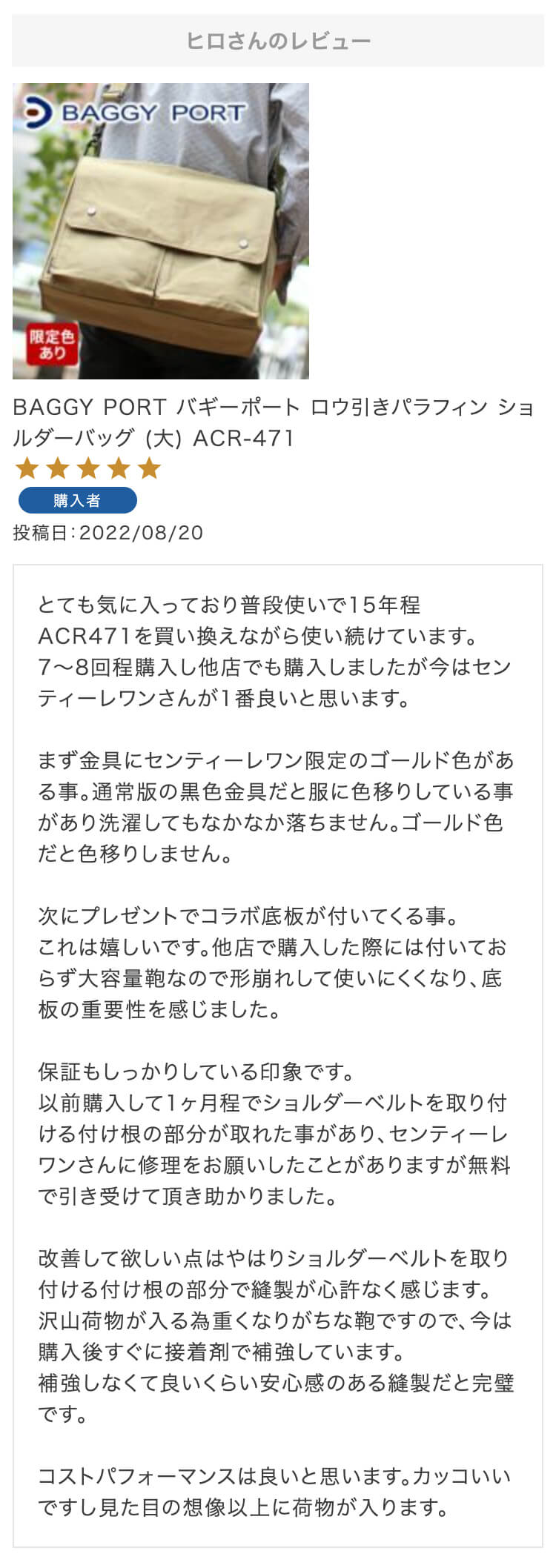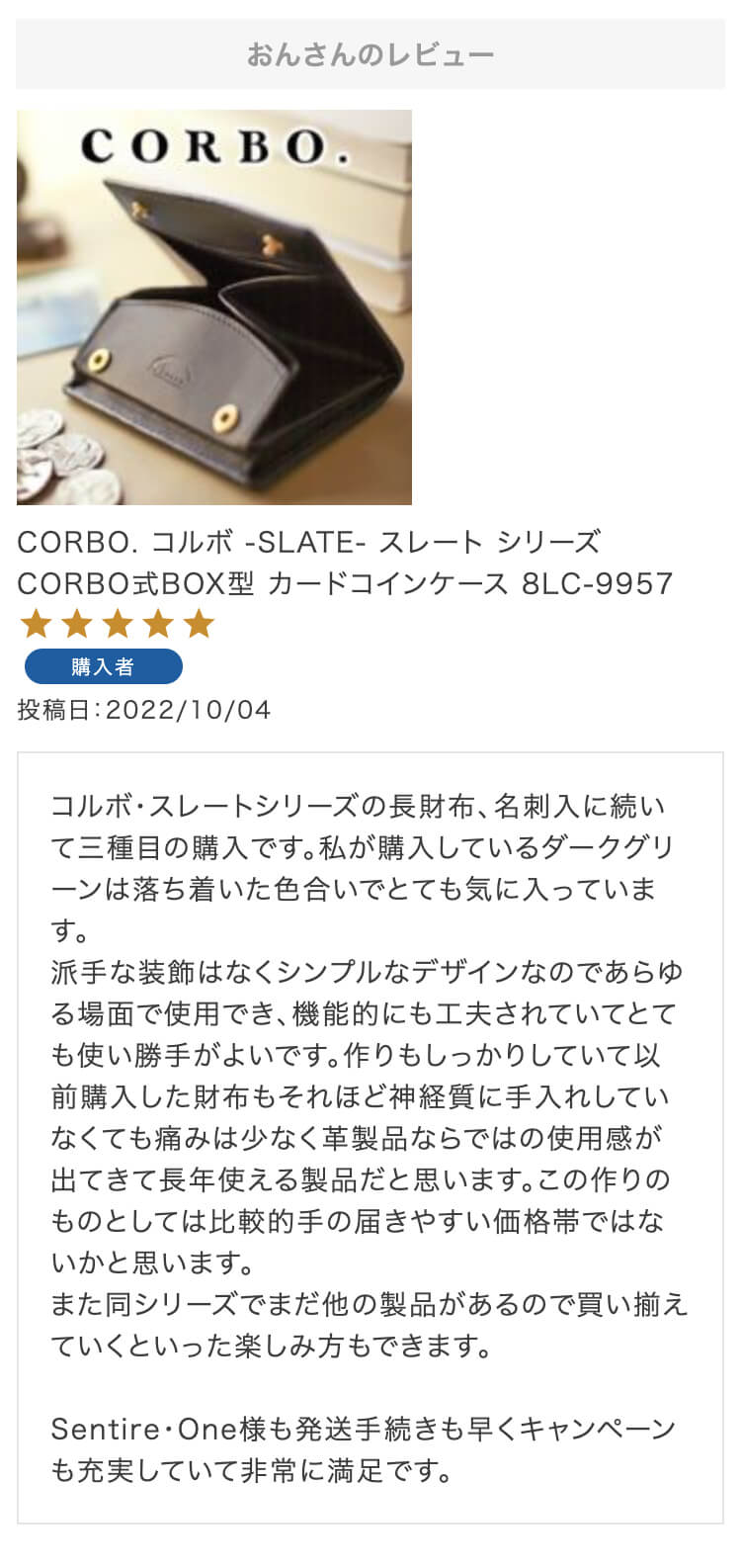 第21回 レビュー大感謝キャンペーン 特賞お名前:おん様投稿日:2022/10/4