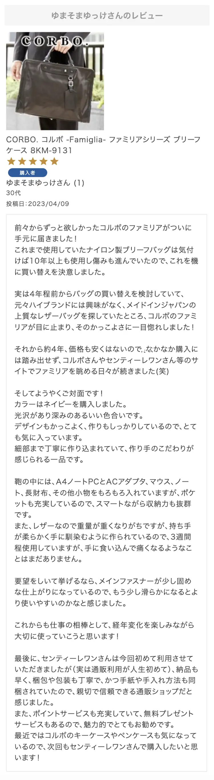 第33回 レビュー大感謝キャンペーン 特賞お名前:サルママ様投稿日:2023/10/5