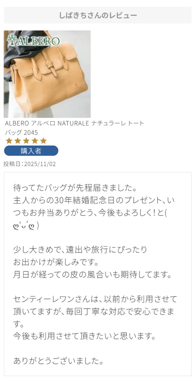 第56回 レビュー大感謝キャンペーン 特賞お名前:m.n様投稿日:2025/9/28